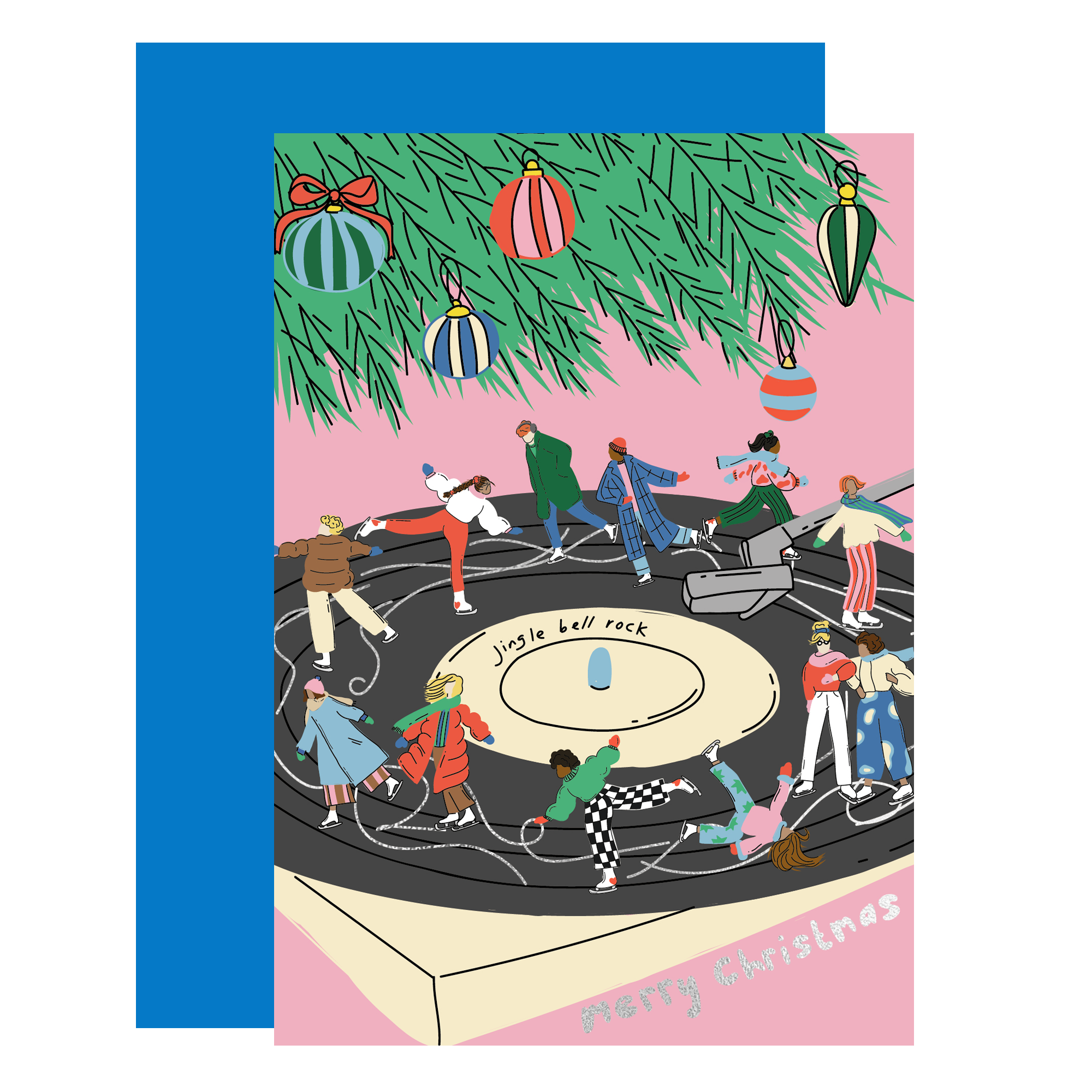 Bring festive cheer with our ‘Jingle Bell Rock’ Christmas card — a playful, hand-illustrated design featuring a cute ice-skating scene spinning around a classic vinyl record with a gorgeous holo foil finish.