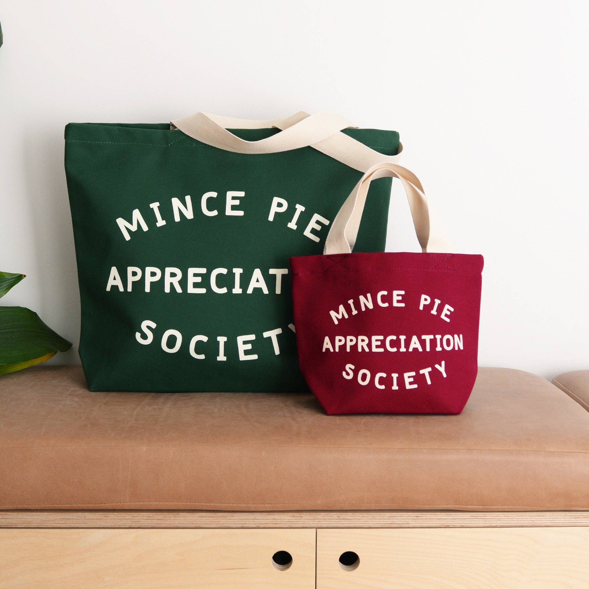 Our 'Mince Pie Appreciation Society' design has been screen printed in off-white on sturdy canvas.