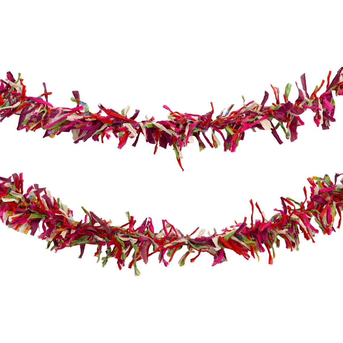 An exciting innovation for Talking Tables, our new Multi-coloured Upcycled Fabric Tinsel. A sustainable option from traditional tinsel, the upcycled fabric is 100% cotton made from remnants that would have ended up in landfill. Sourced and made by our trusted supplier in India, who also creates all our much-loved fabric bunting. The chunky, reusable tinsel adds bold and rustic style to your Christmas display, a must-have for maximalist lovers.