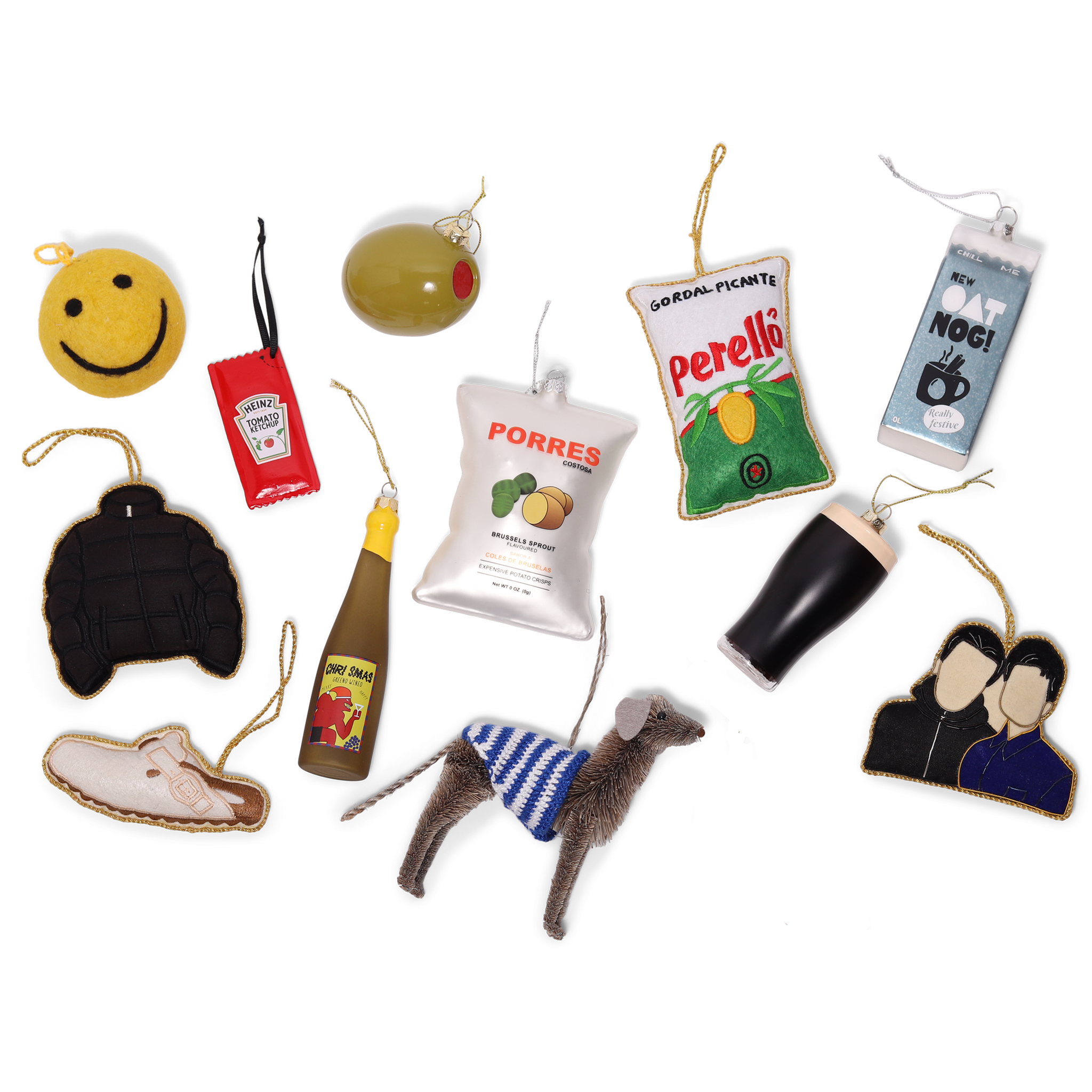 Our cult collaboration with Perelló, reimagined in thread. Handmade in India by skilled artisans, this embroidered decoration captures the iconic green-and-white tin in joyful, stitch-perfect detail.