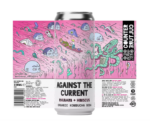 Counter Culture Rhubarb + Hibiscus Organic Kombucha Soda // Against the Current 300ml